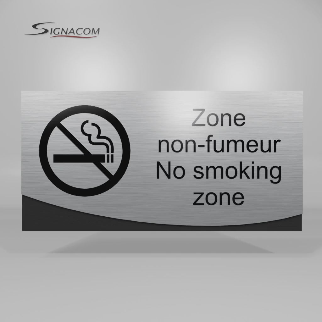 - Lamacoid / Gravoply avec finition aluminium brossé.