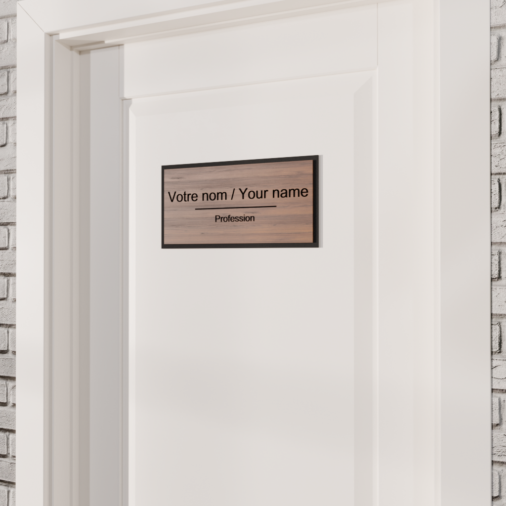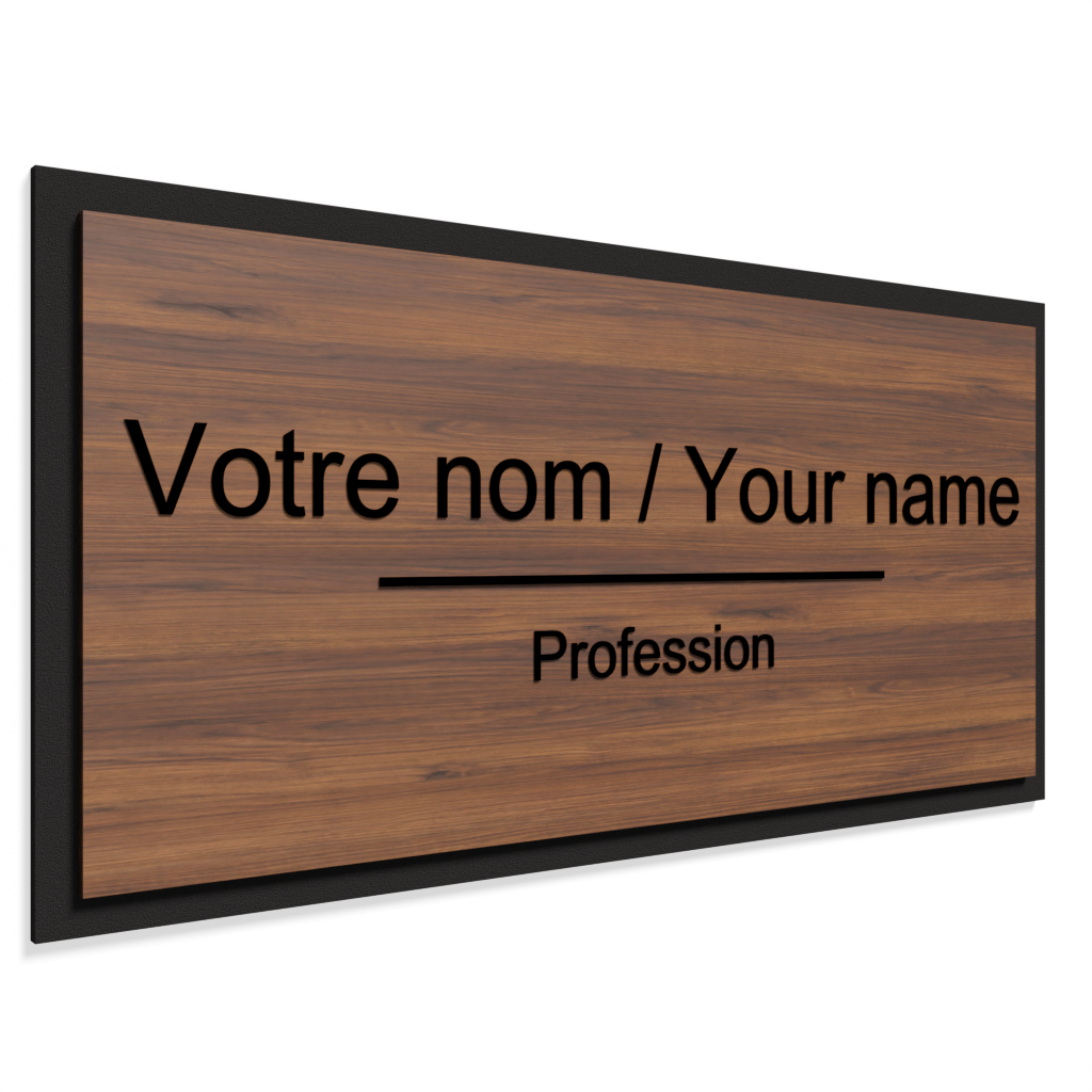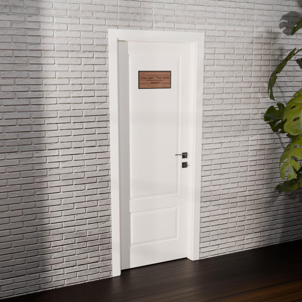 Perfect for heritage properties, professional offices, and institutional spaces, it evokes professionalism and timelessness. Made of wood veneer, acrylic, or Lamacoid, the Classiq collection offers a refined and reassuring aesthetic that transcends trends and enhances your credibility.